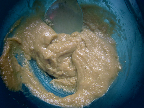 4. Add the peanut butter mixture to the dry ingredients. Add the water and mix thoroughly:
